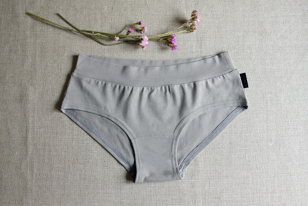 Dámské kalhotky z kvalitního organického bavlněného úpletu v šedé barvě, velmi příjemné na omak.