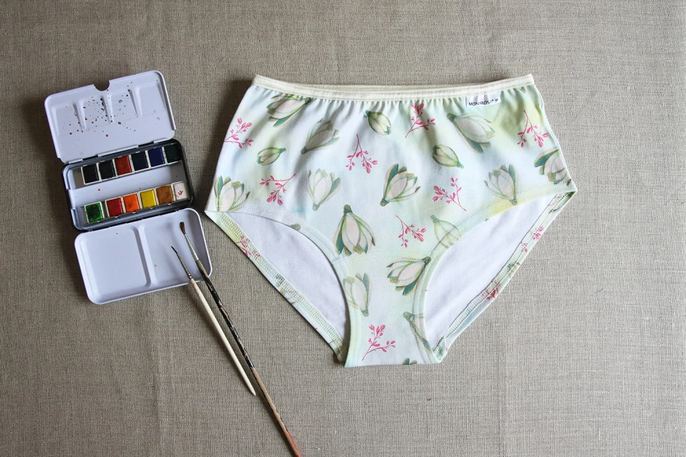 Dámské kalhotky z kvalitního organického bavlněného úpletu s autorským potiskem, velmi příjemné na omak. Pečlivě vyrobeny v ČR.