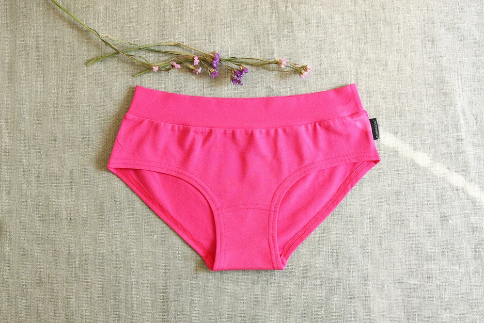 Dámské kalhotky z kvalitního organického bavlněného úpletu ve výrazné růžové barvě, velmi příjemné na omak.