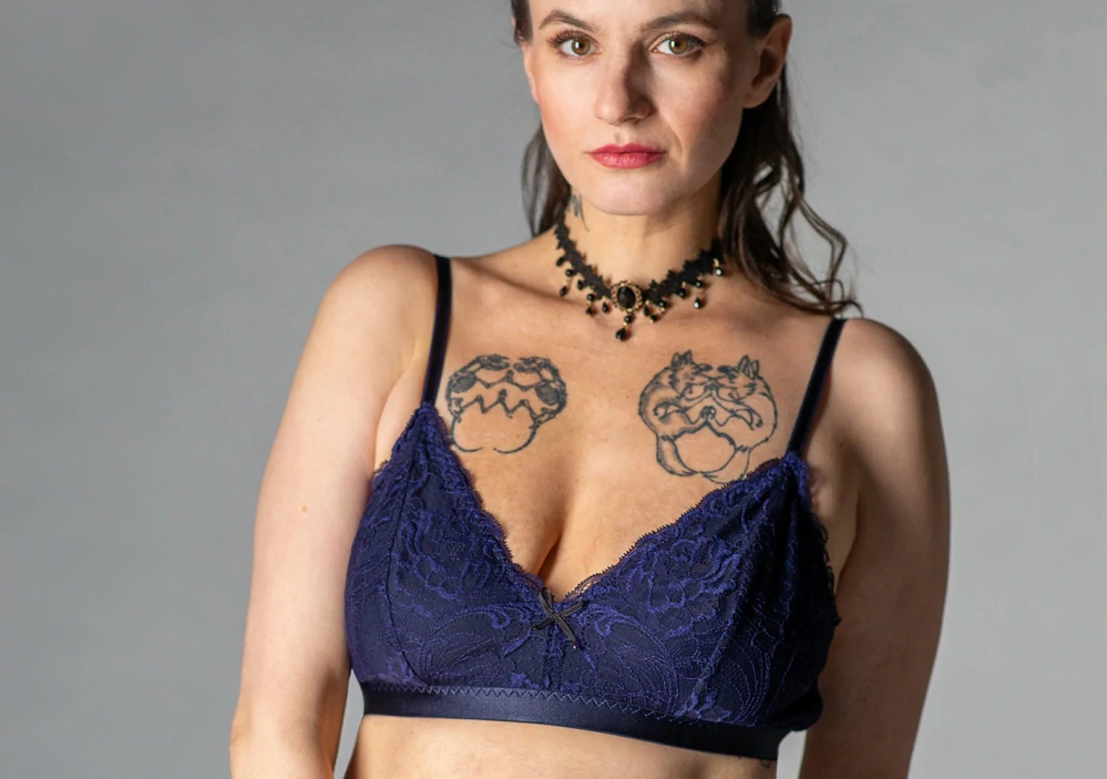 Krajková podprsenka z magické krajky se secesním vzorem. Krajka je temně fialová - švestková, podložená úpletem z organické bavlny. Je doplněná o ručně šitou mašličku. Neskutečná barva této krajky mne inspirovala ke jménu podle bohyně podsvětí PERSEFONÉ.